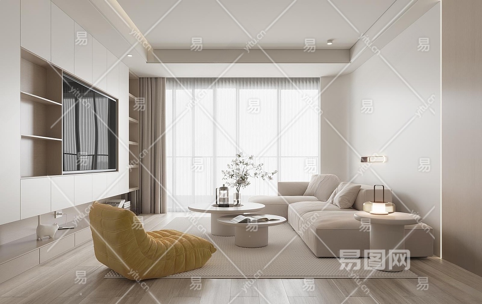 现代客厅3D模型下载
