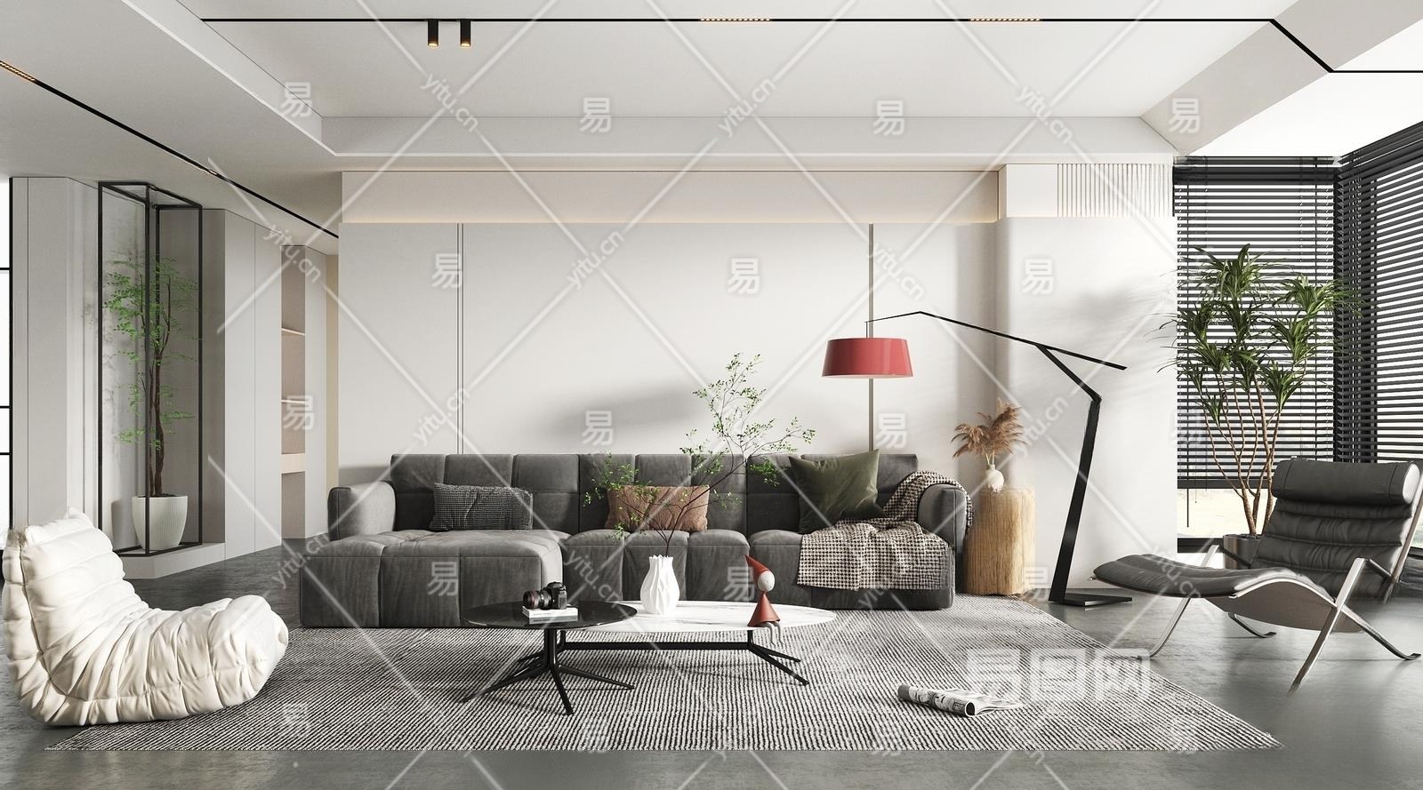 现代客厅3D模型下载