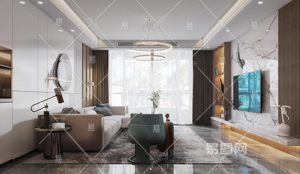 现代家居客厅3D模型下载