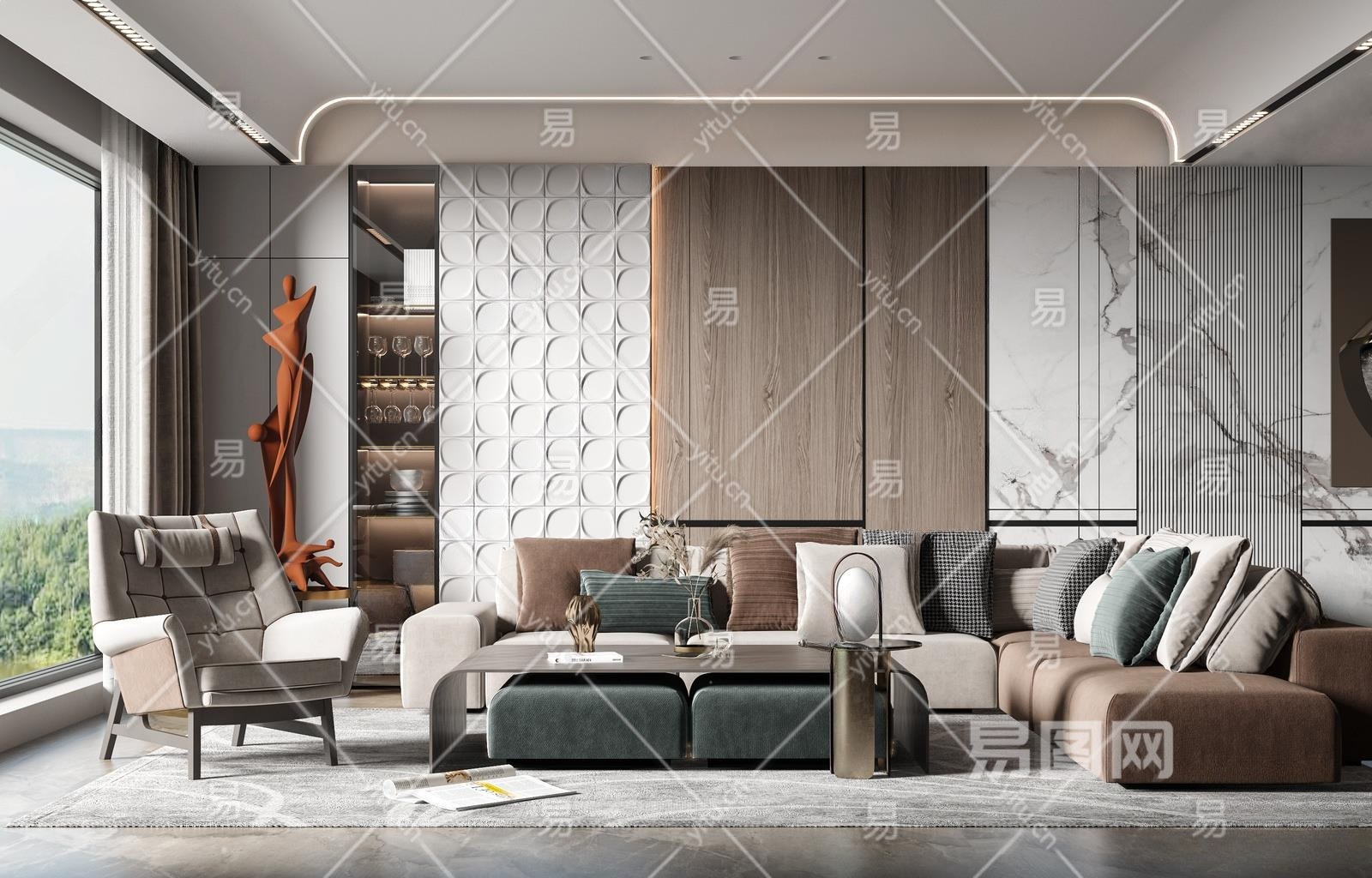 现代家居客厅3D模型下载
