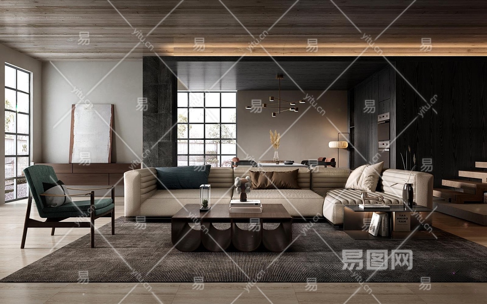 现代家居客厅3D模型下载