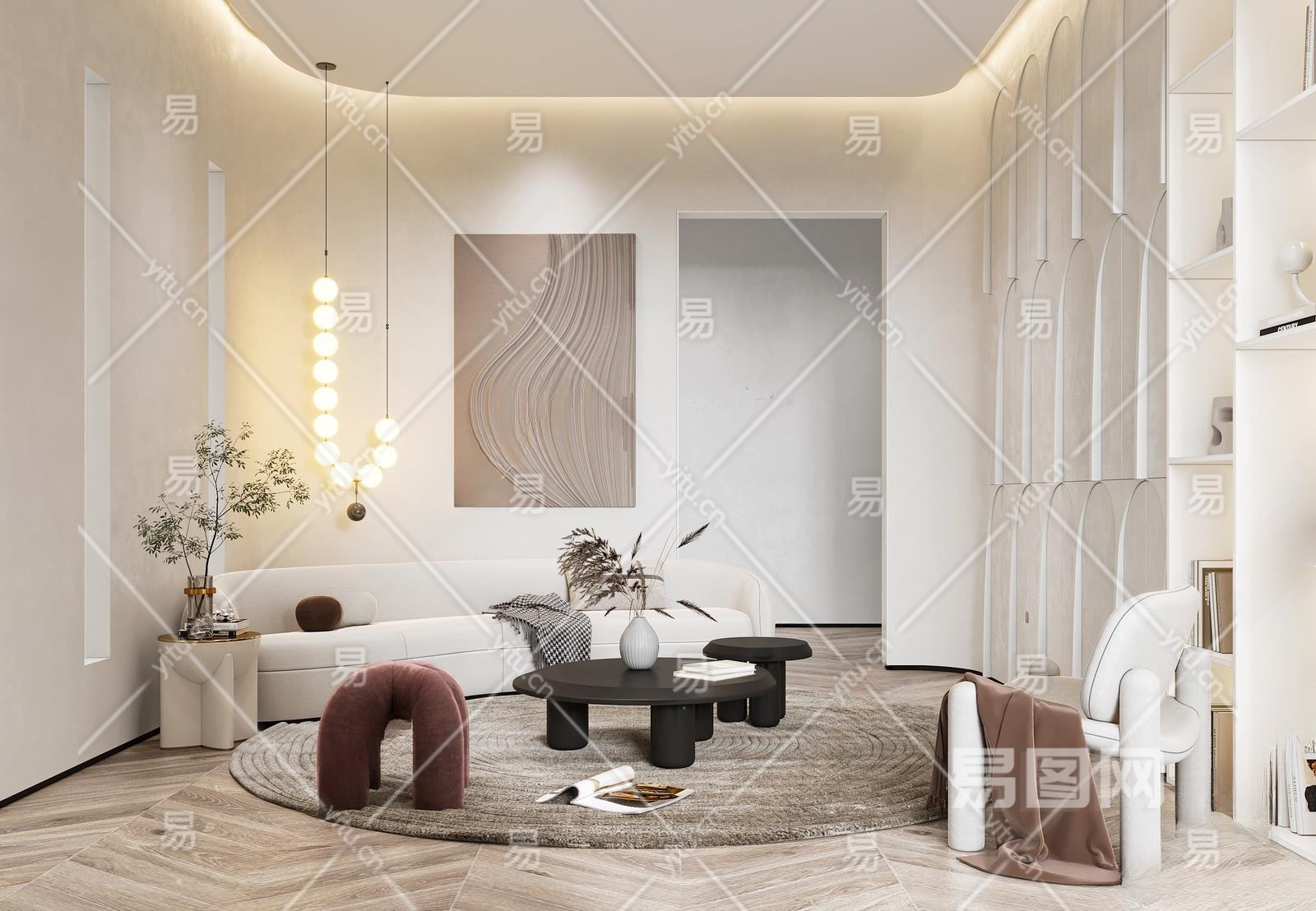 现代客厅3D模型下载
