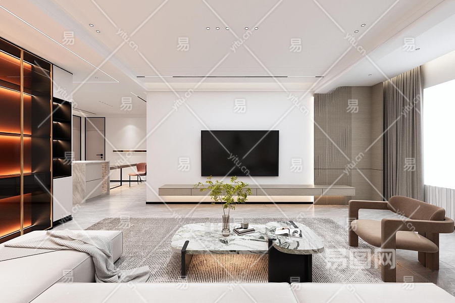 现代客厅3D模型下载