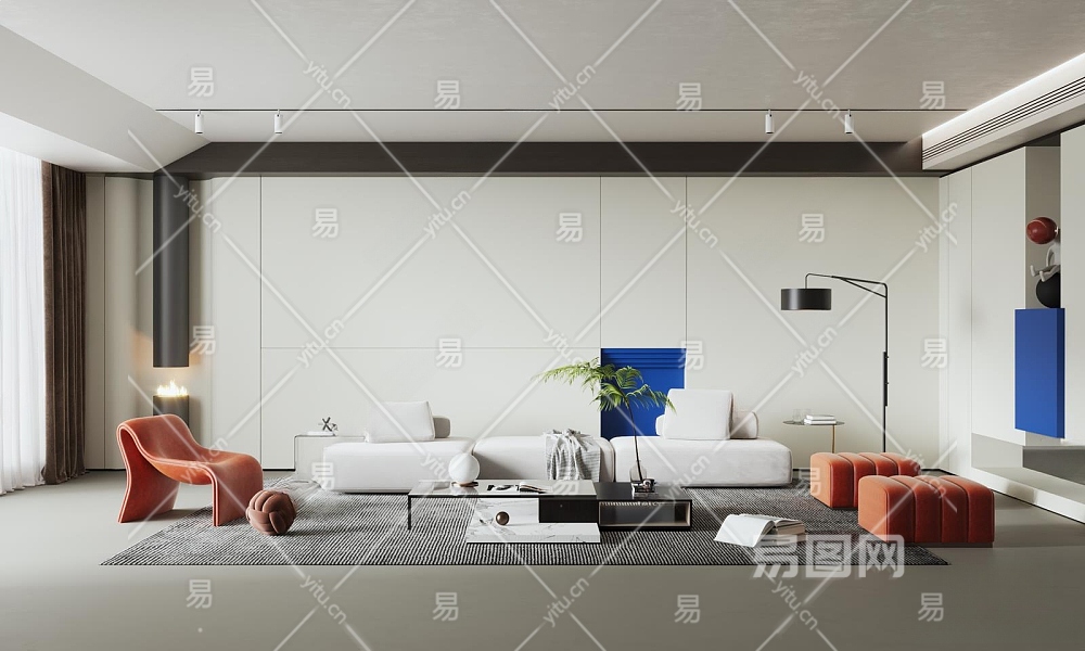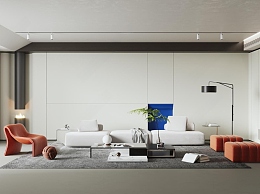 现代极简客厅3D模型下载