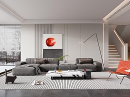 现代别墅客厅3D模型下载