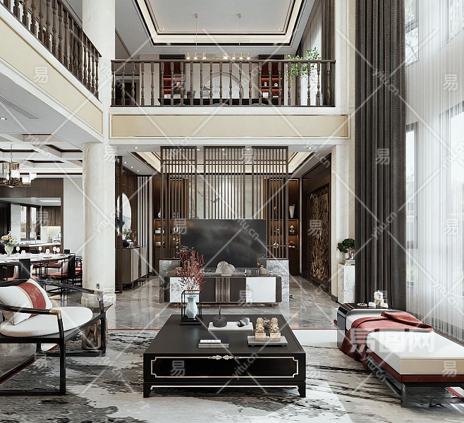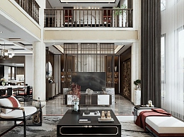新中式别墅客厅3D模型下载