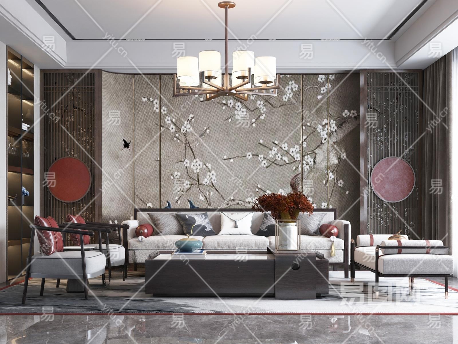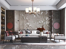 新中式家居客厅3D模型下载