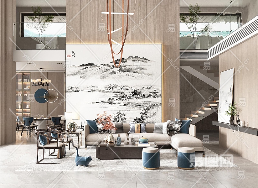 当前的位置:首页 > 3D模型 > 家装空间 > 客厅 > 新中式别墅客厅3D模型下载