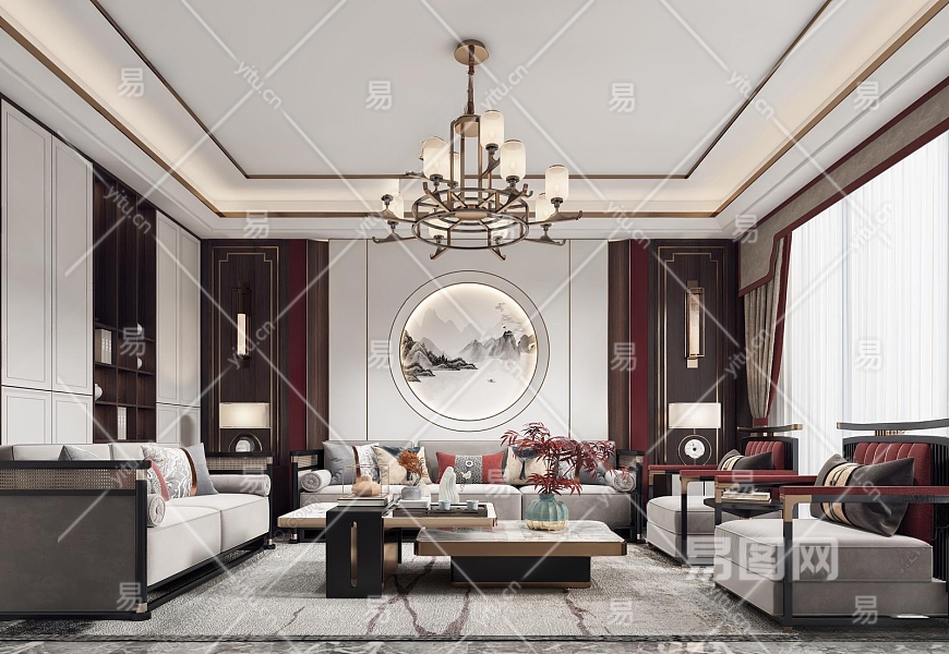 新中式家居客厅3D模型下载