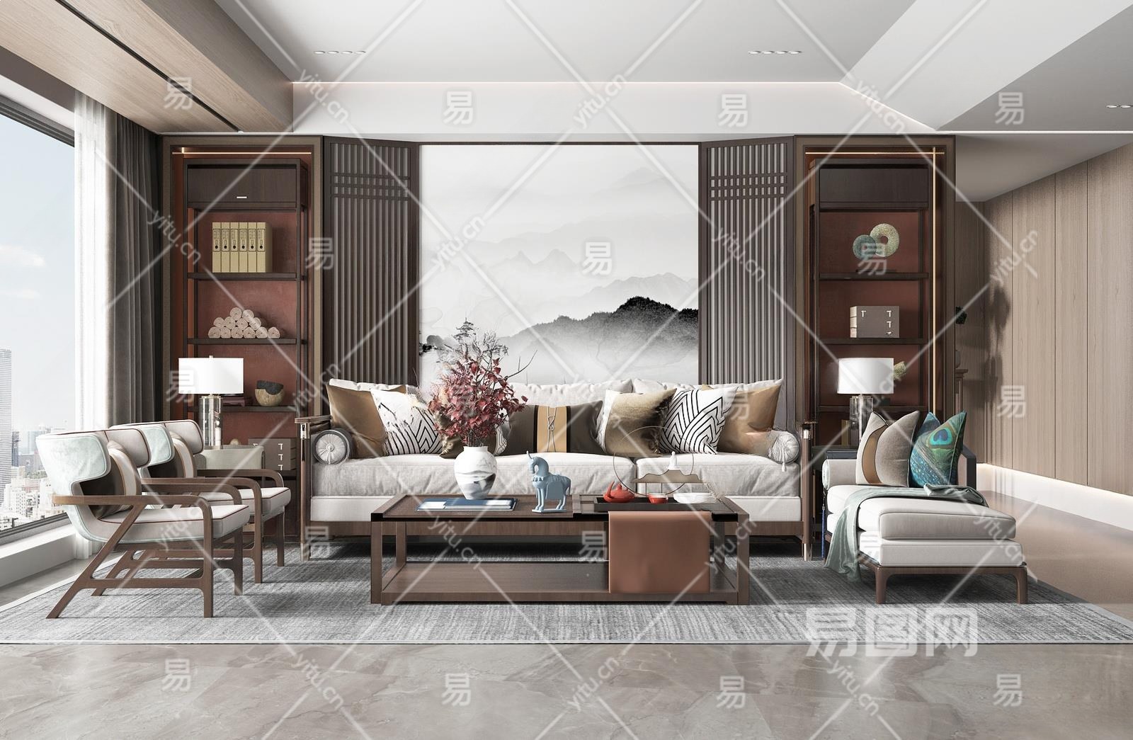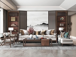 新中式家居客厅3D模型下载