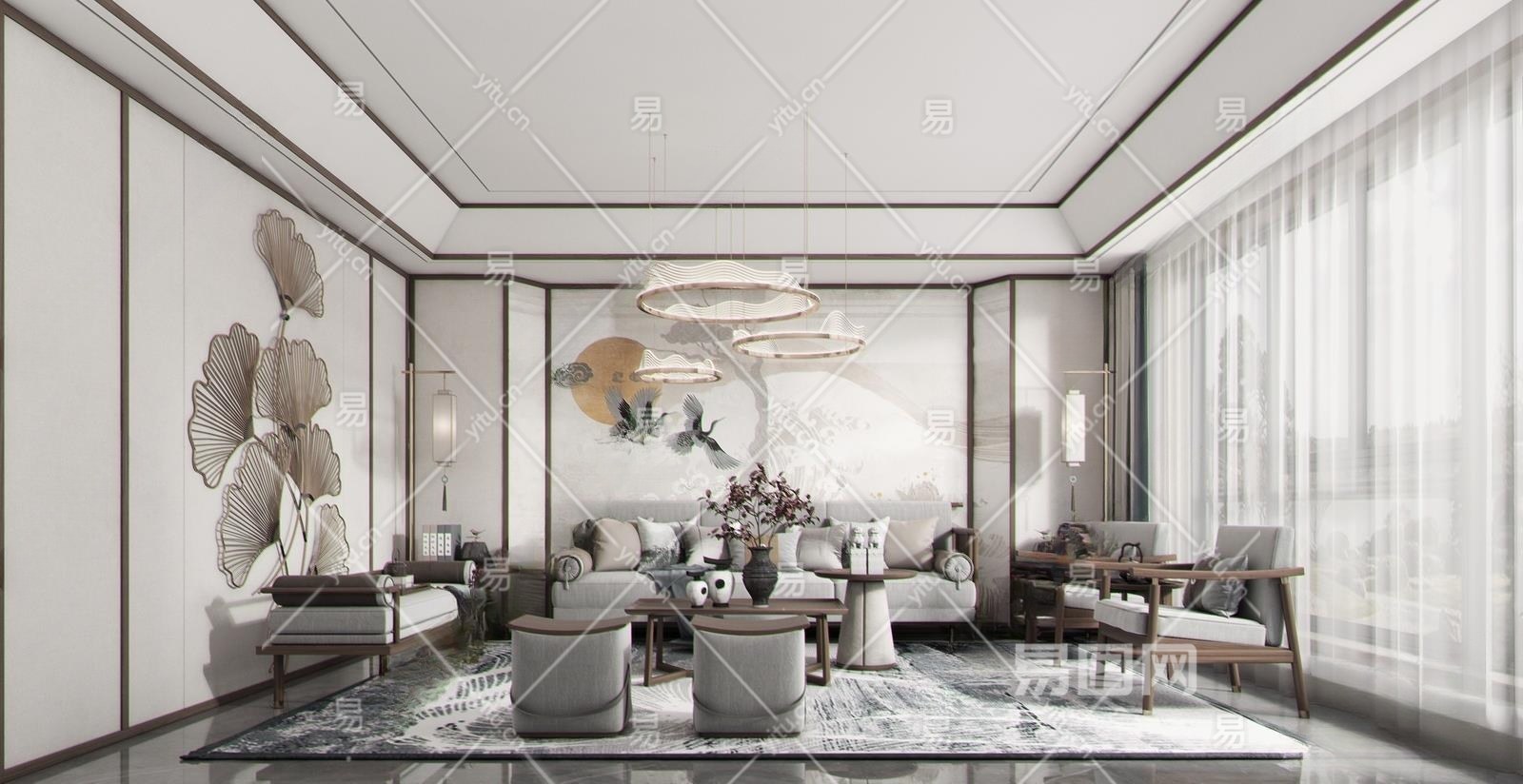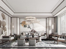 新中式客厅3D模型下载
