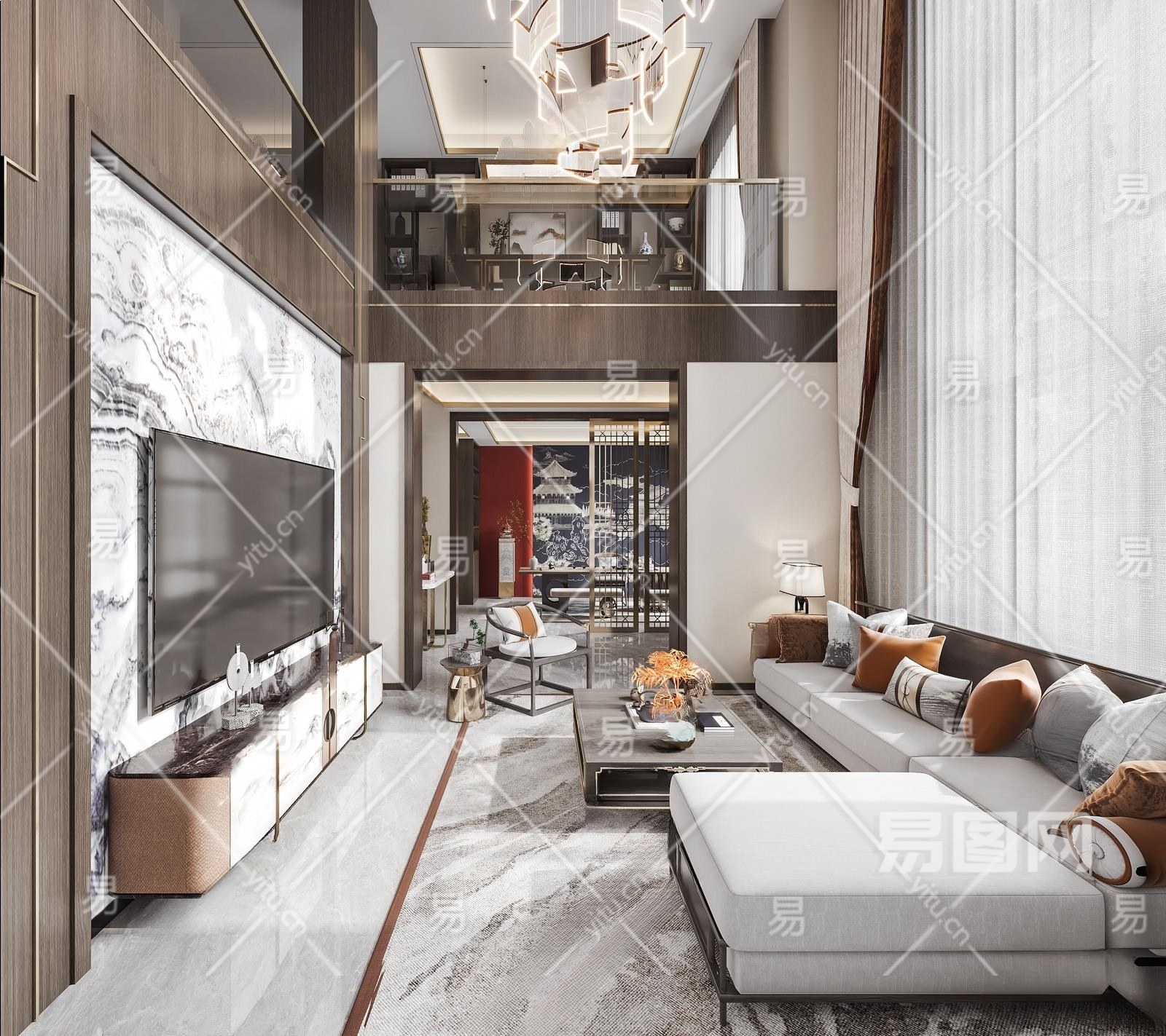 新中式别墅客厅3D模型下载