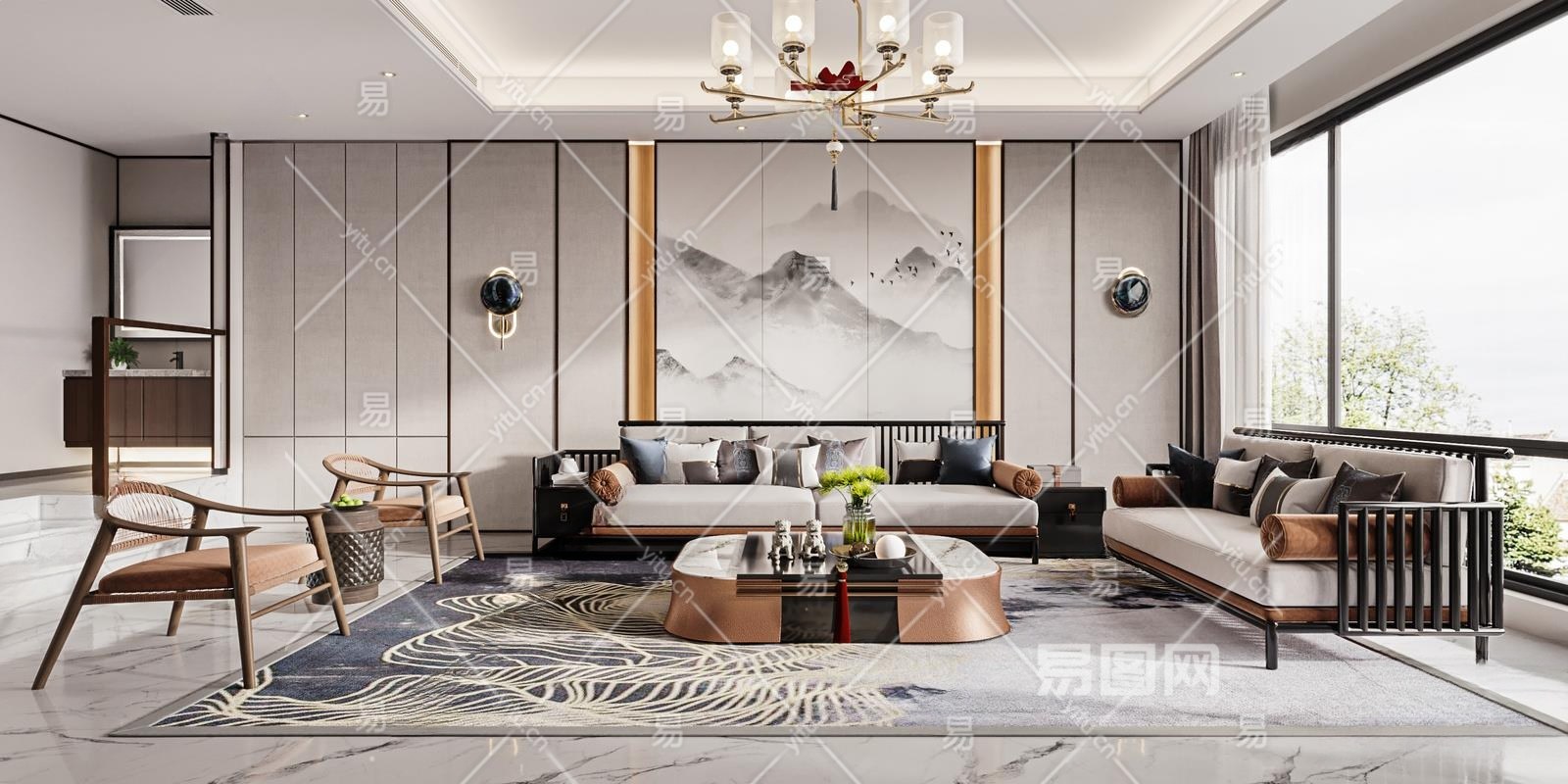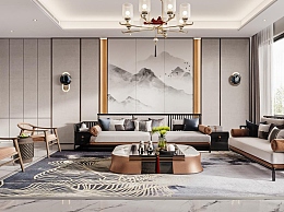 新中式别墅客厅3D模型下载