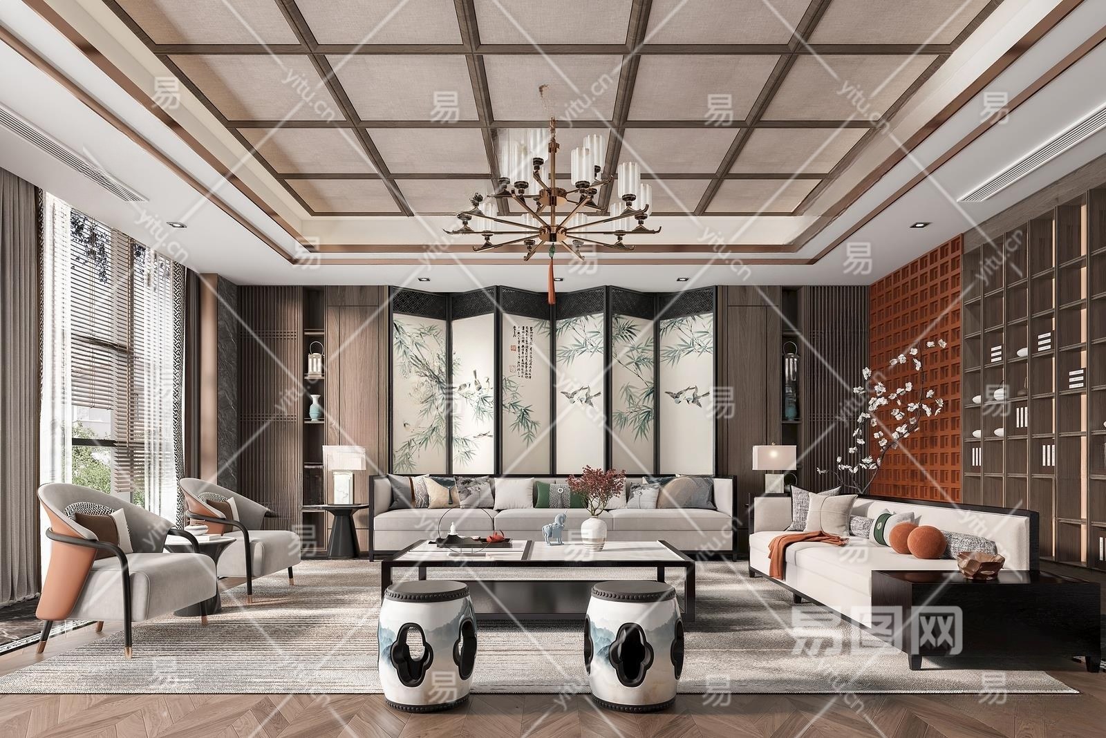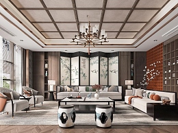 新中式客厅3D模型下载