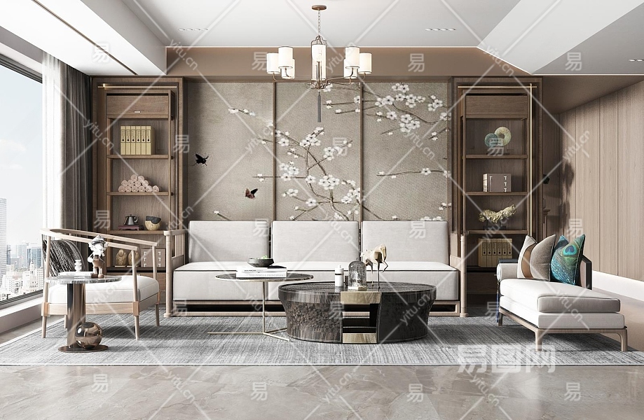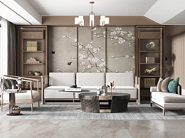 新中式客厅3D模型下载
