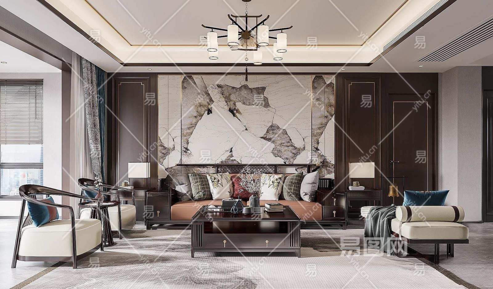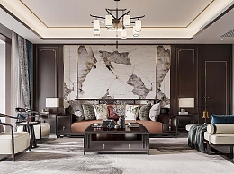 新中式客厅3D模型下载