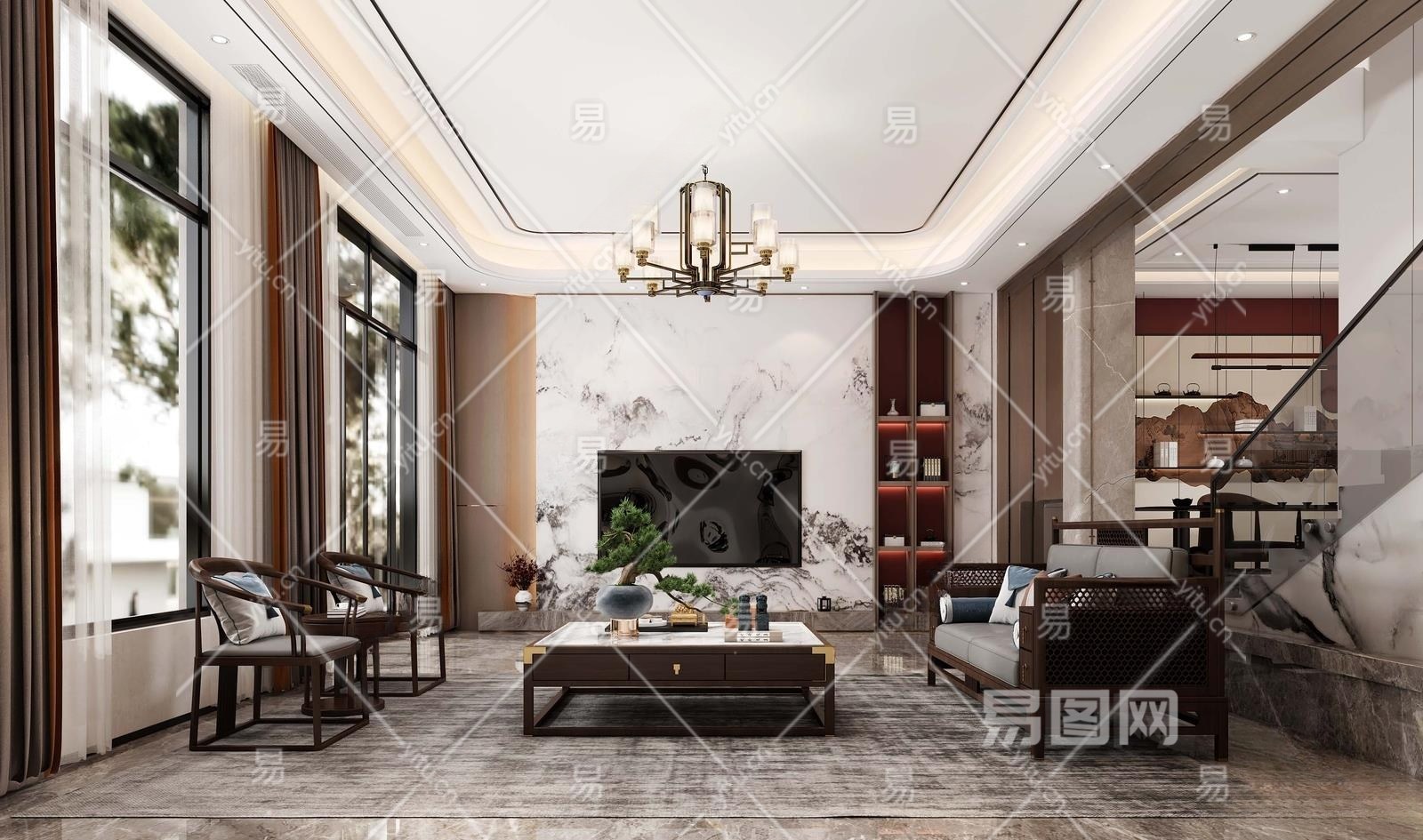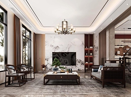 新中式别墅客厅3D模型下载