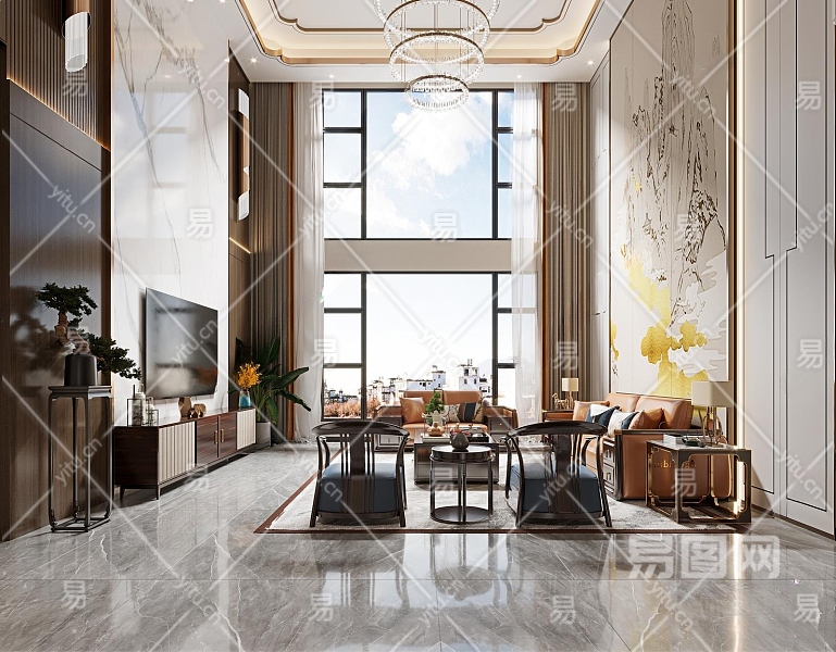当前的位置:首页 > 3D模型 > 家装空间 > 客厅 > 新中式别墅挑空客餐厅3D模型下载