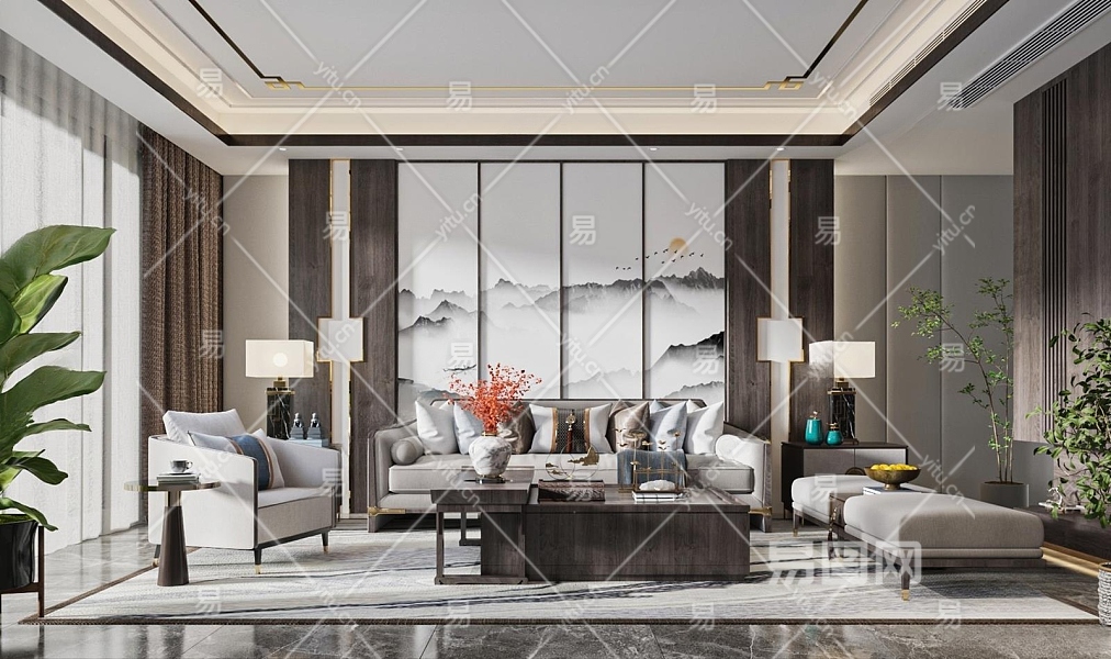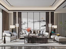 新中式客厅3D模型下载