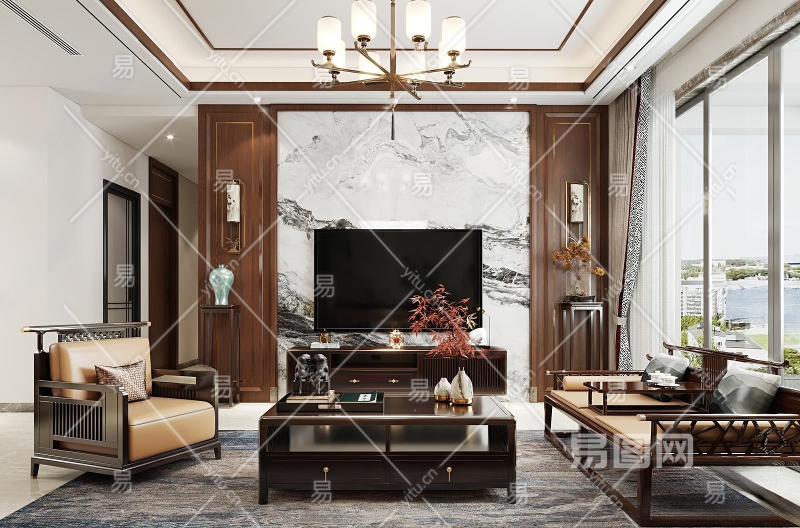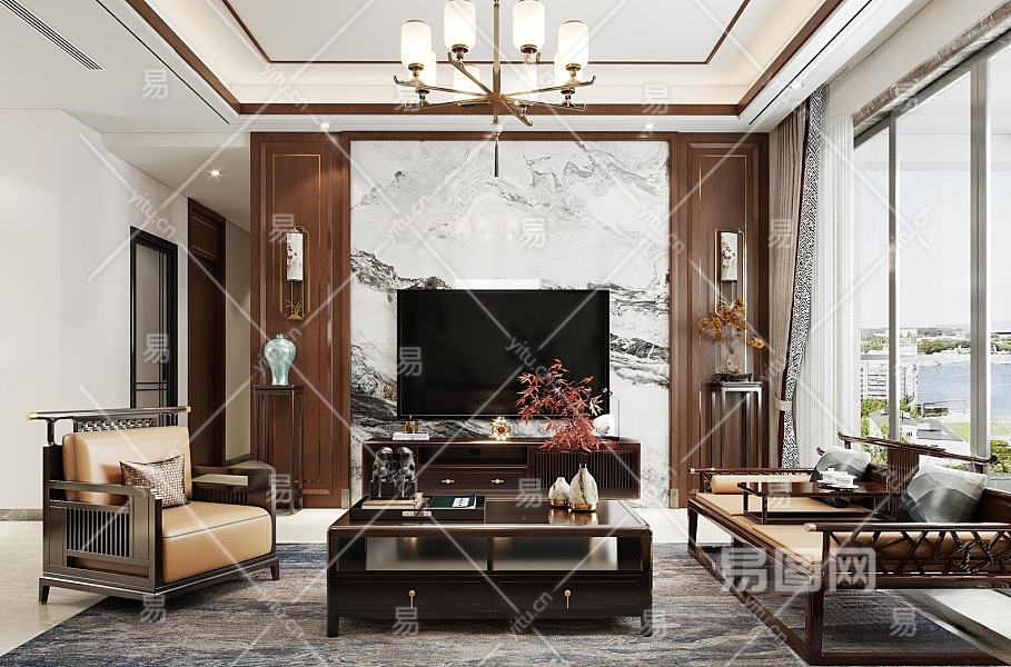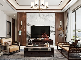 新中式客厅3D模型下载