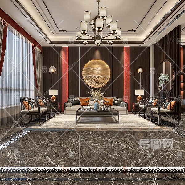 新中式客厅3D模型下载