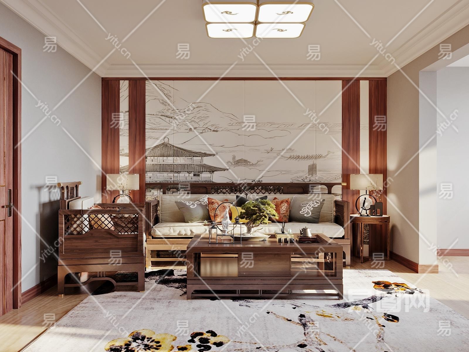 中式家居客厅3D模型下载