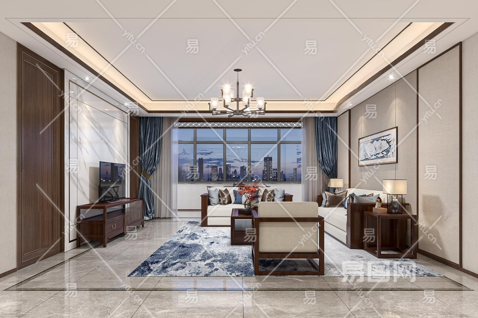 中式家居客厅3D模型下载