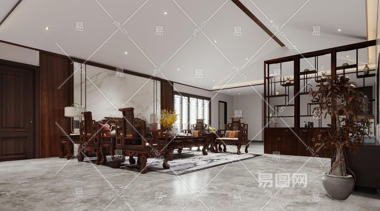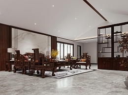 中式家居客厅3D模型下载