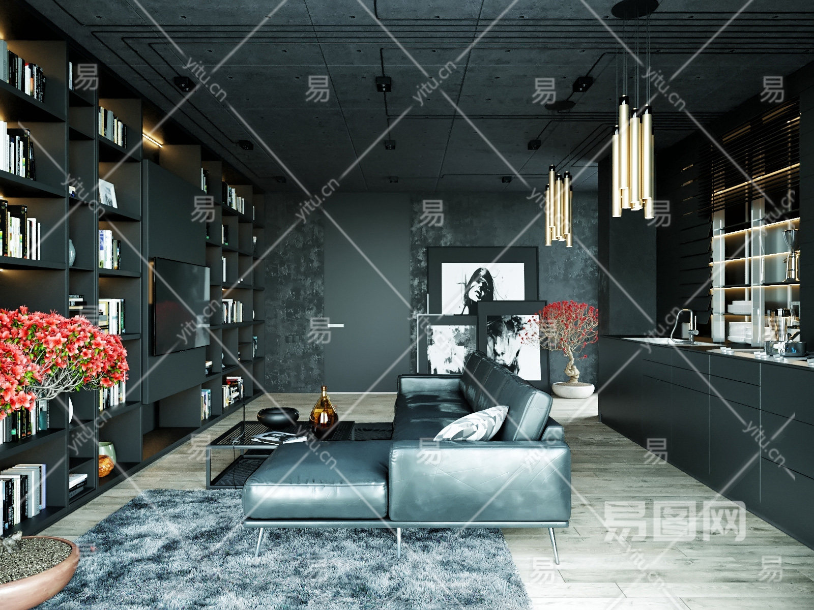 当前的位置:首页 > 3D模型 > 家装空间 > 客厅 > 现代工业风深色金属时尚个性客厅