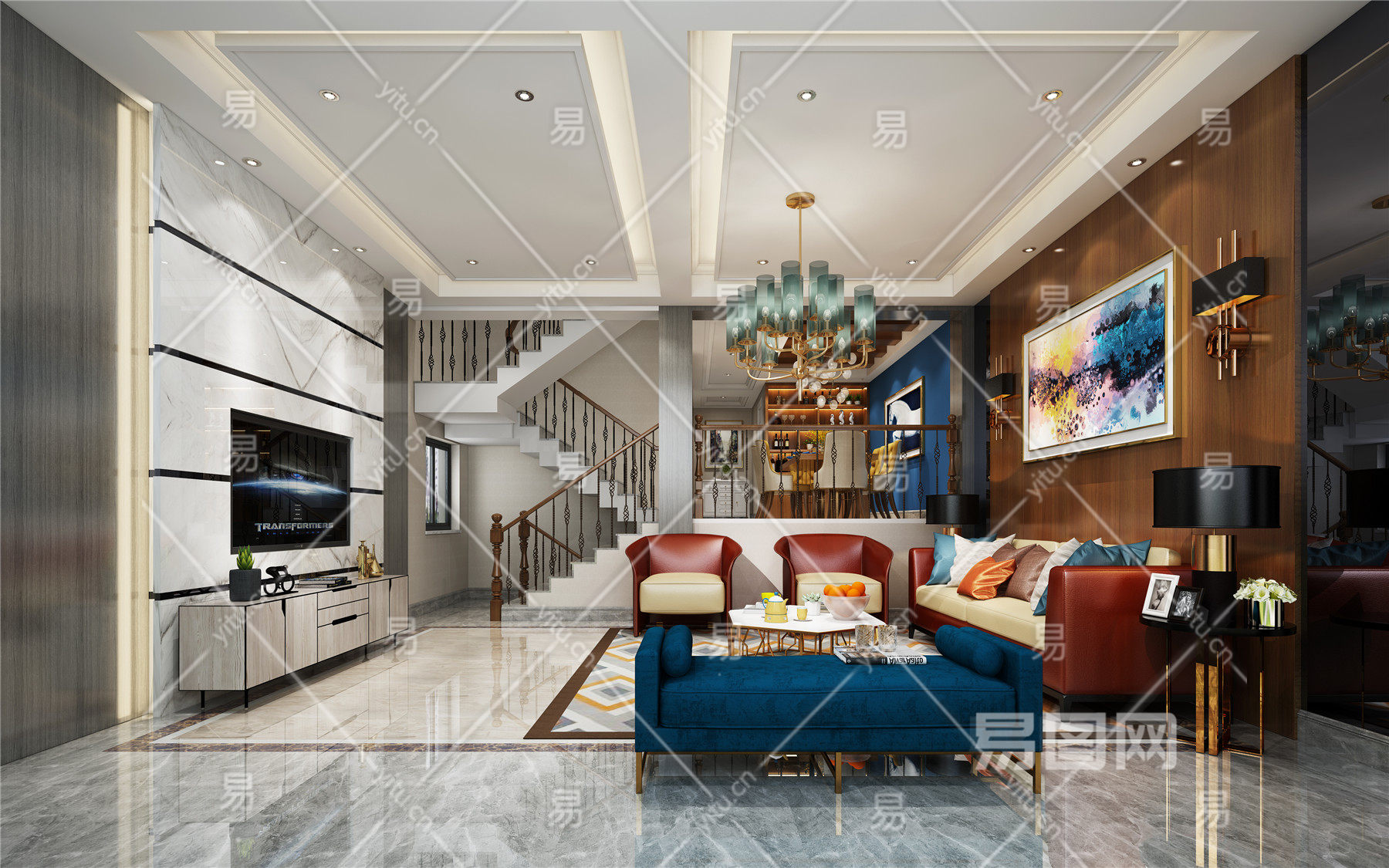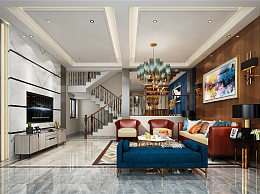 欧式简约客厅 沙发 茶几 电视柜 吊灯