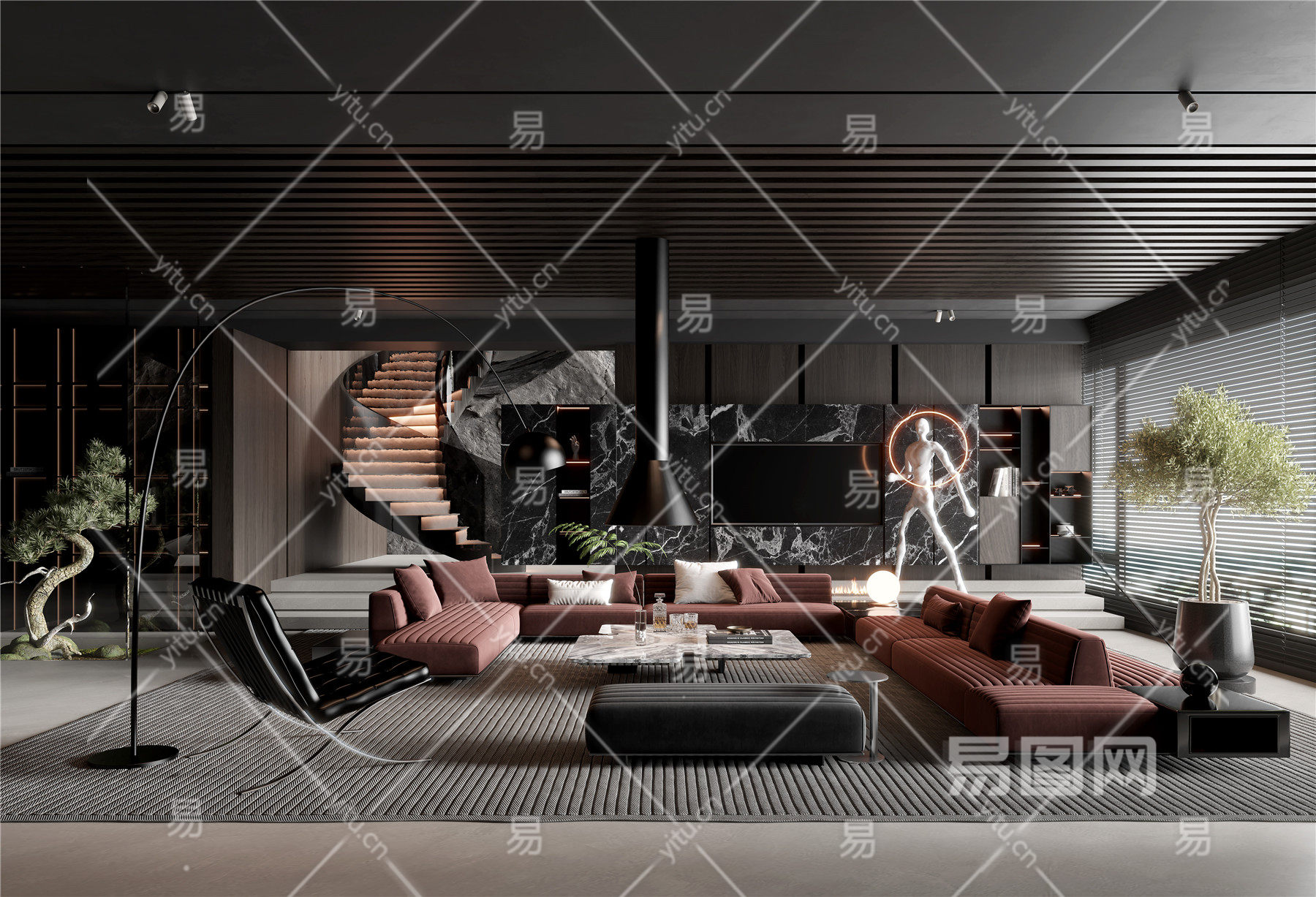 当前的位置:首页 > 3D模型 > 家装空间 > 客厅 > 现代别墅客厅-2