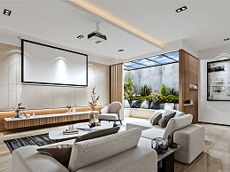 现代简约客厅 沙发茶几 电视柜 投影仪