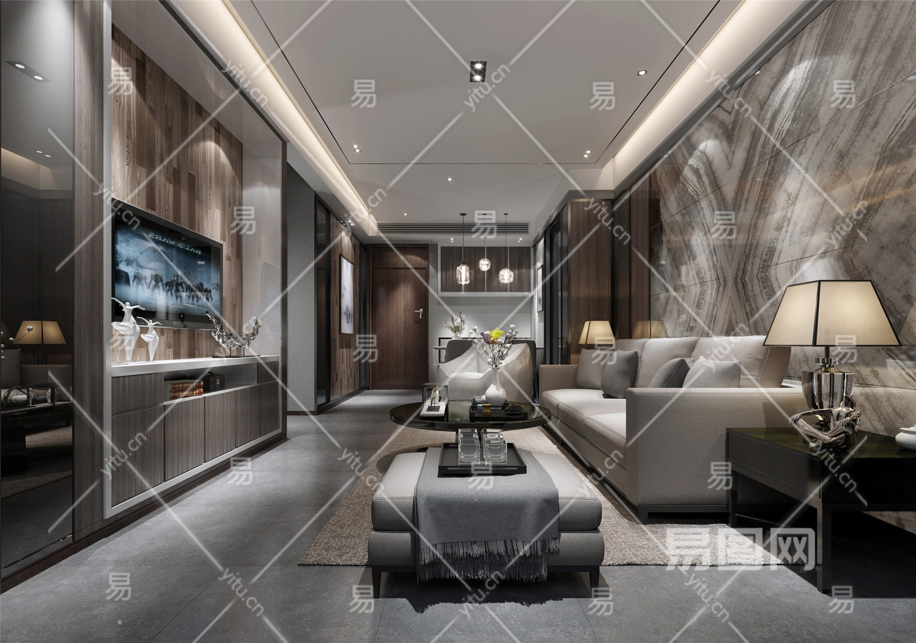 当前的位置:首页 > 3D模型 > 家装空间 > 客厅 > 现代客厅 沙发组合 台灯 摆件 茶几