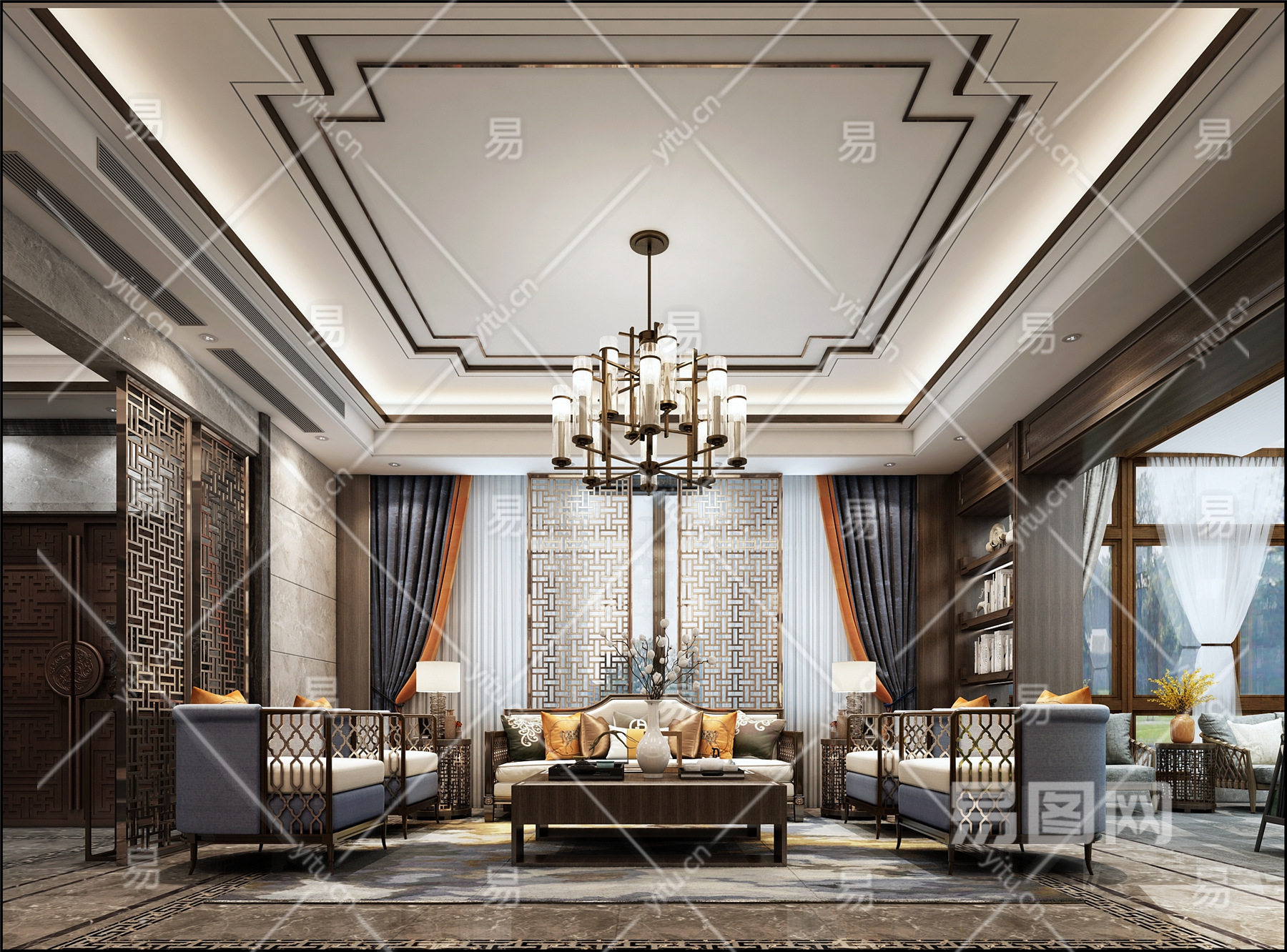 当前的位置:首页 > 3D模型 > 家装空间 > 客厅 > 新中式别墅客厅