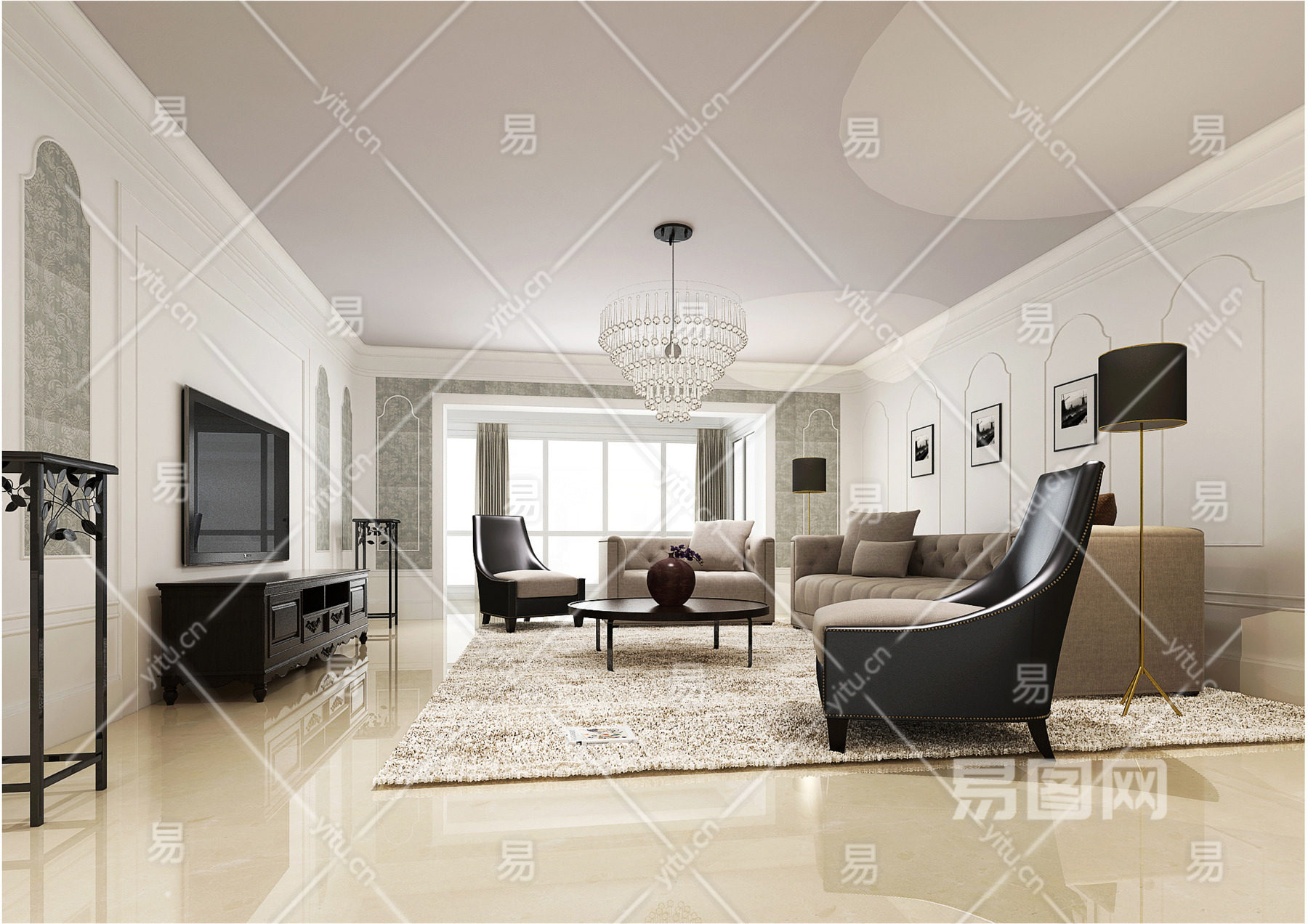 新古典最新 轻奢 后现代 厅沙发 真皮沙发 吊灯电视柜 落地灯