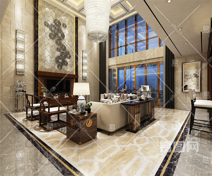 当前的位置:首页 > 3D模型 > 家装空间 > 客厅 > 新中式复式客厅 沙发组合 吊灯 壁灯 台灯 摆件