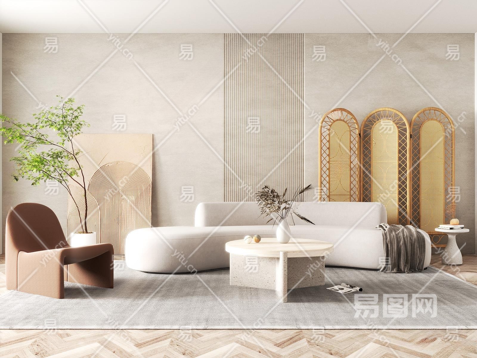 侘寂家居客厅3D模型下载