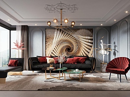 法式轻奢客厅3D模型下载