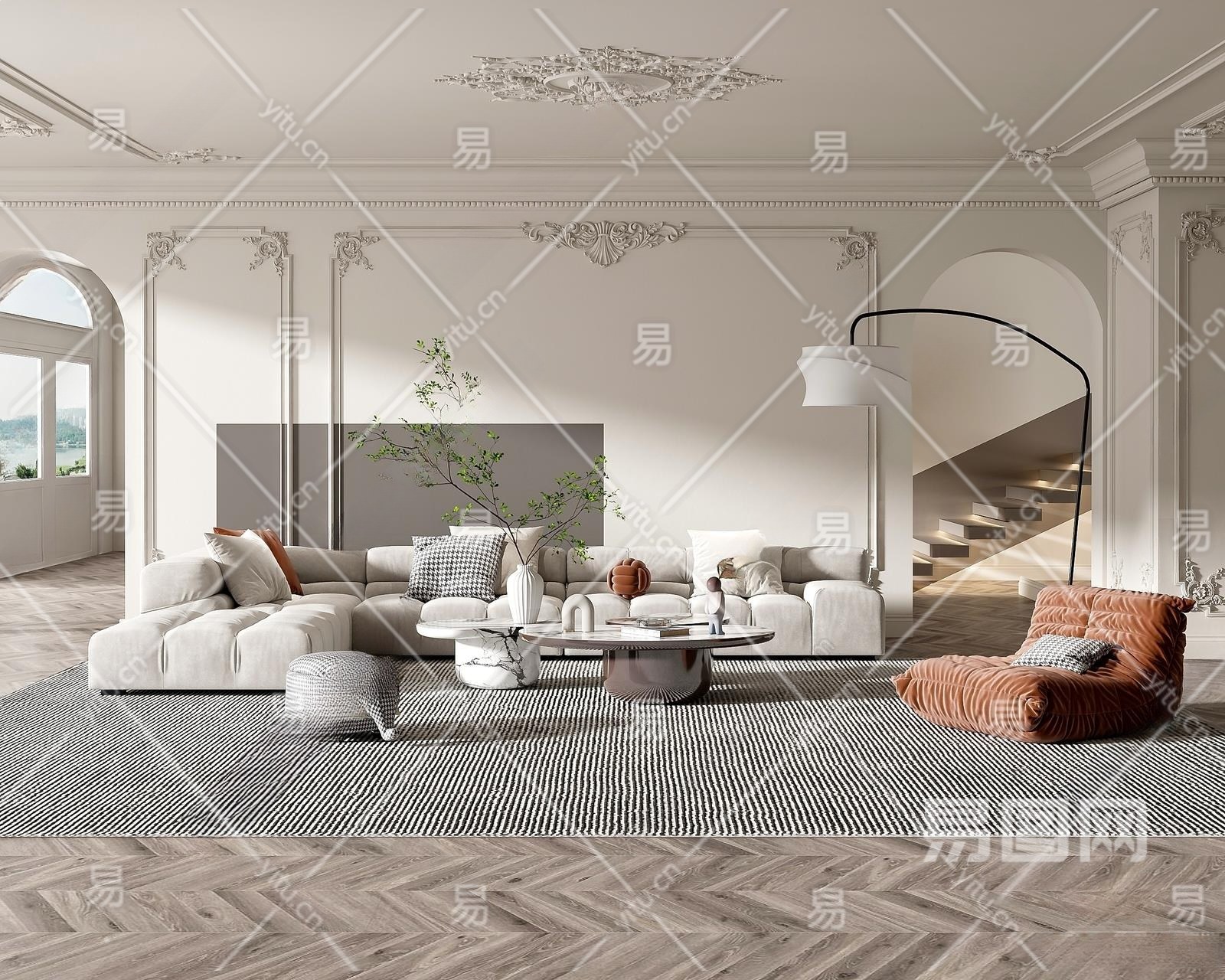 法式客厅3D模型下载