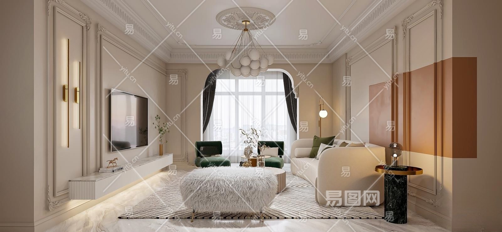 法式客厅3D模型下载