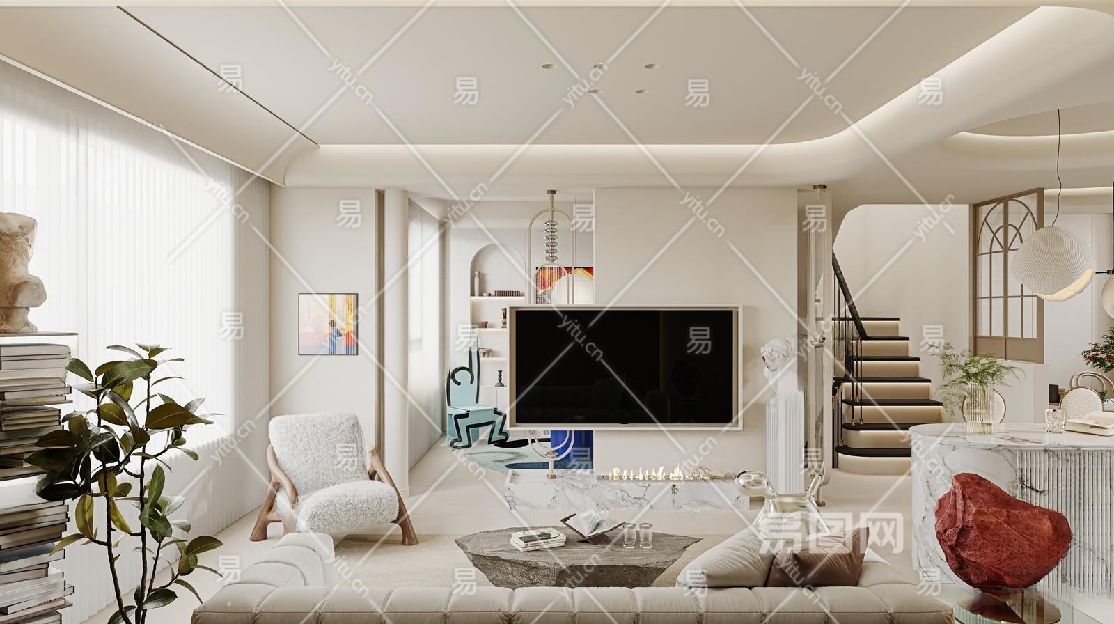 法式别墅客厅3D模型下载