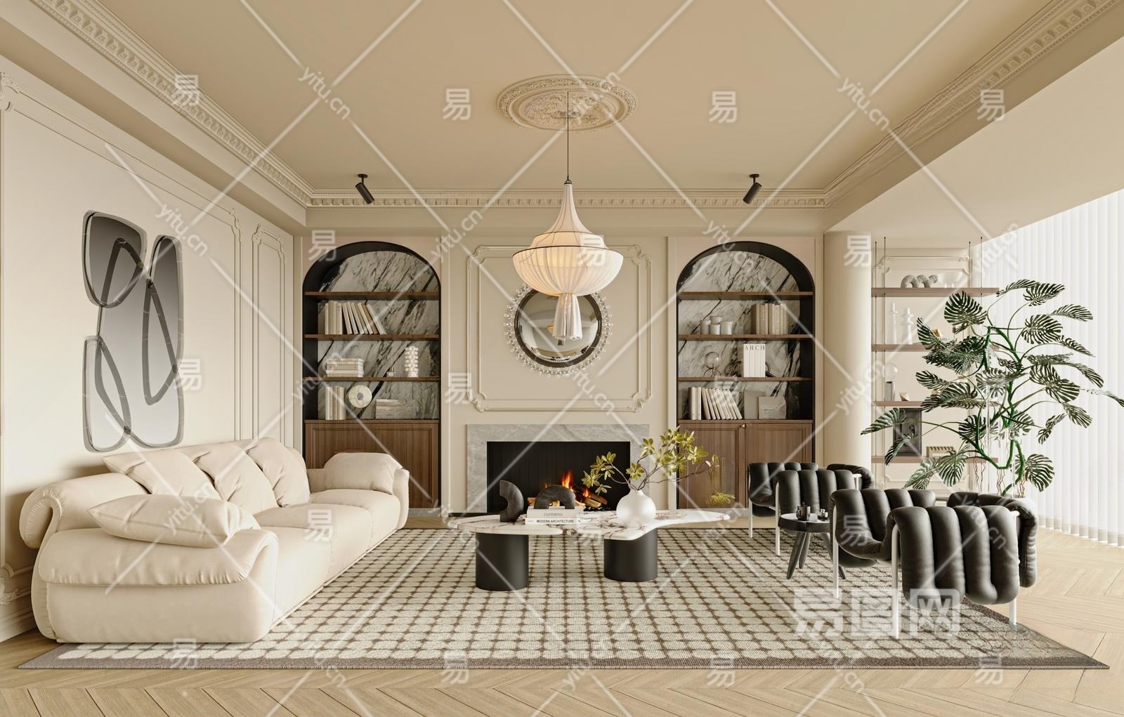 法式客厅3D模型下载