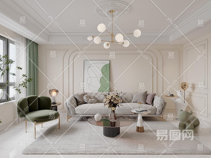法式客厅3D模型下载