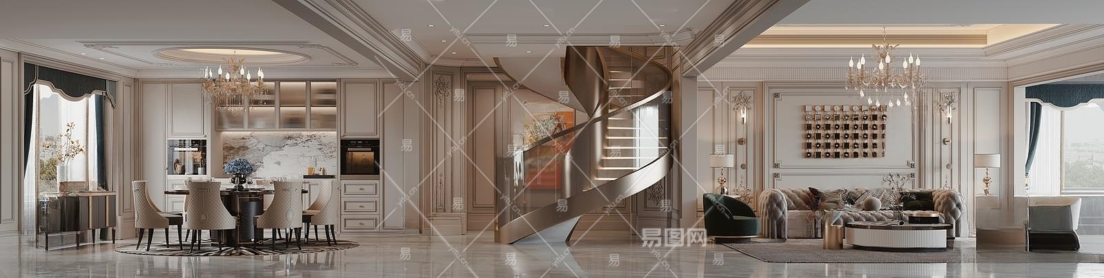 简欧别墅客厅3D模型下载