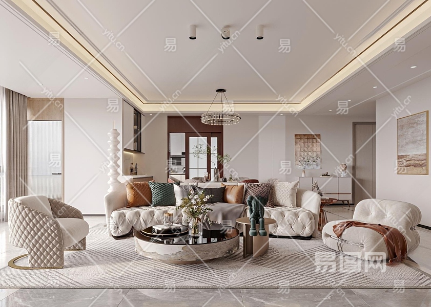 简欧客厅3D模型下载