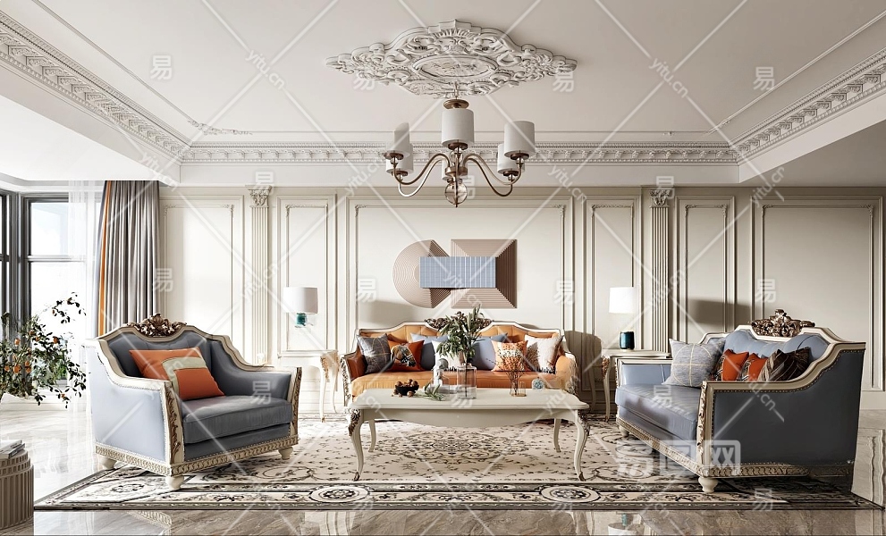 材质VR材质 贴图有贴图 灯光VR灯光 风格简欧