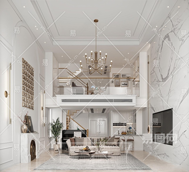 简欧别墅客厅3D模型下载