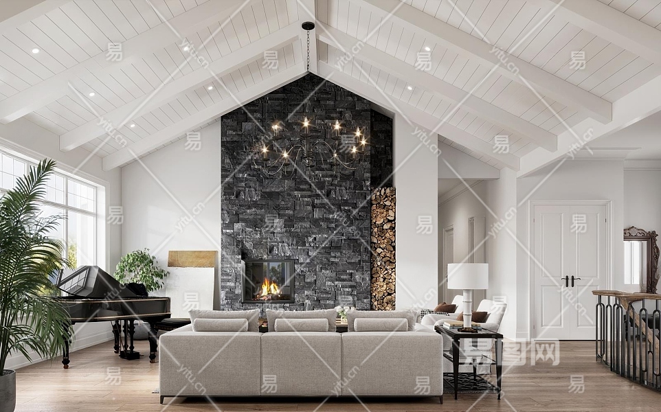 美式别墅客厅3D模型下载