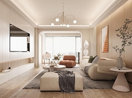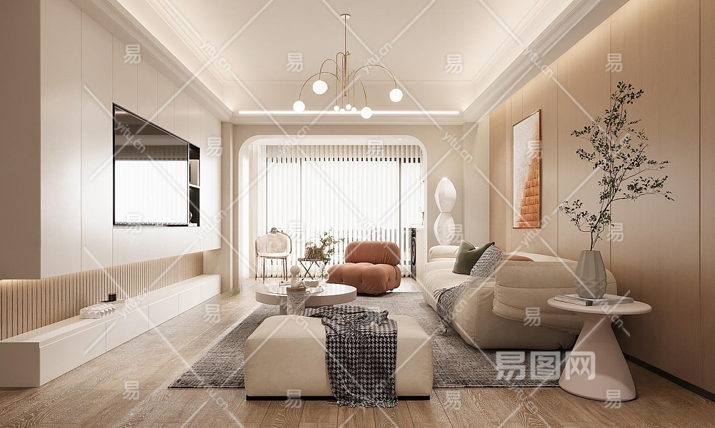 现代奶油风客厅3D模型下载