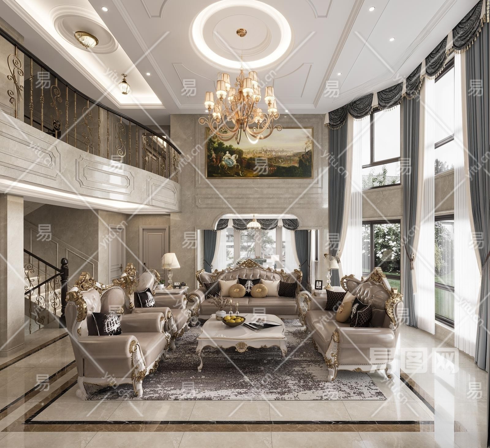 当前的位置:首页 > 3D模型 > 家装空间 > 客厅 > 欧式古典别墅客厅3D模型下载